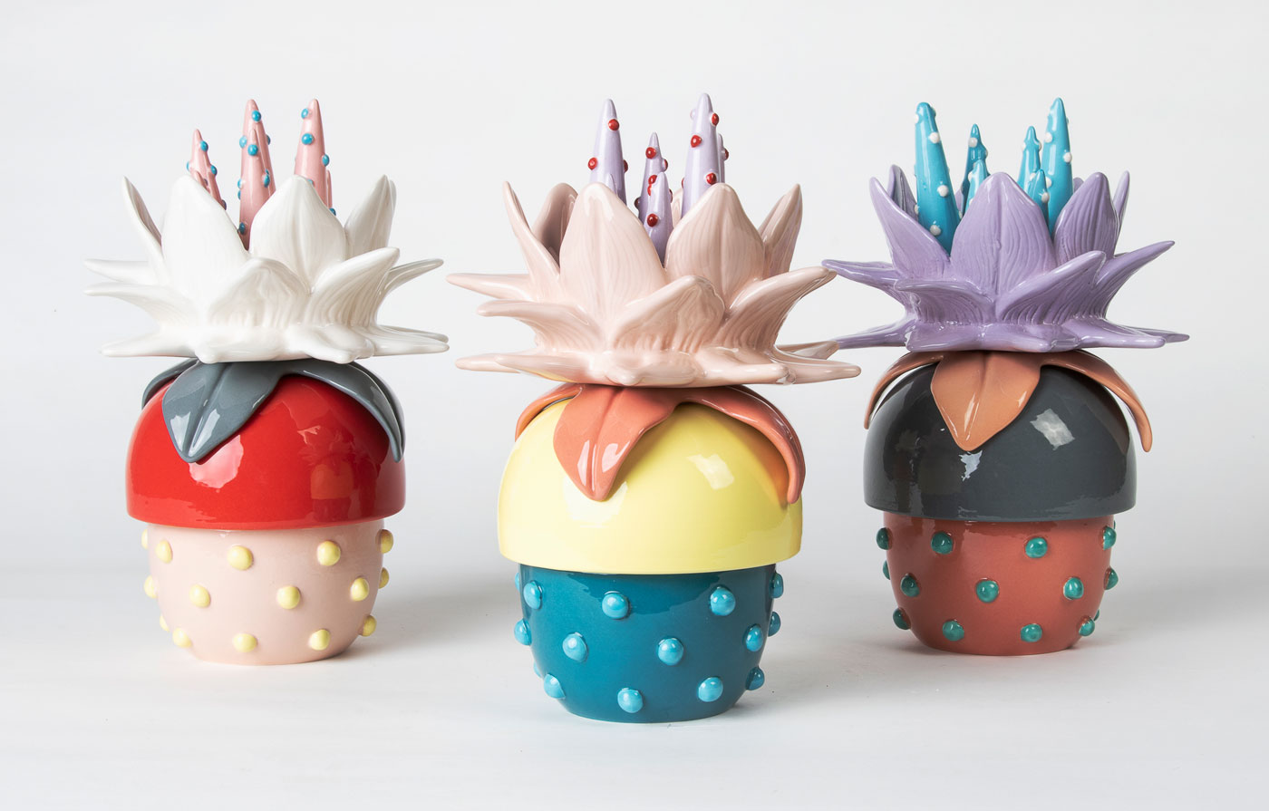 Bitossi Home e Funky Table ritornano per il terzo anno consecutivo alla Milano Design Week con il progetto B-LOOM, che accoglie le novità de La Tavola Scomposta. La collezione si arricchisce di esuberanti elementi decorativi provenienti dall’immaginario incantato della designer Paula Cademartori. I nuovi prodotti de La Tavola Scomposta, tra cui vasi, portaoggetti e copri tazze, sono ispirati alle tipiche specie della ora tropicale del Sud America, terra d’origine della designer, reinterpretate in nuove forme di natura flamboyant. Alle fantasie floreali sono abbinati simboli tipici dell’iconografia classica, anche questi rivisitati in chiave creativa e mai convenzionale. Pensati per impreziosire gli interni con ironia e funzionalità, gli oggetti sono presentati in molteplici forme e colori appartenenti a una palette che varia da toni più caldi e forti, come terracotta e rosso, a sfumature dalle tonalità pastello tra cui salvia e lilla. Tutti gli elementi, sia in termini di progettazione che scelte cromatiche, nascono dall’idea di una “lussuria tropicale” che si esprime in elementi decorativi simmetrici, propri della cultura del design contemporaneo, ma che conservano altresì un’estrema autenticità tipica della genuina bellezza della natura incontaminata. I vasi sono proposti in doppia variante con corpo sottile e simmetrico (Alta Vas e Hydria Humilis) e con forma sferoidale (Amphora). Il copri tazza (Operimentum Policum), così come il porta oggetti (Magna Repono e Parva Repono) seguono lo stesso principio presentandosi con una base semplice e richiamando invece l’attenzione con l’elemento decorativo floreale sulla punta. Le novità sono presentate all’interno di un vivace allestimento creato ad hoc per l’occasione in cui i nuovi prodotti dialogano con l’ampia proposta di tableware de La Tavola Scomposta, del mondo Bitossi Home e di quello Funky Table.